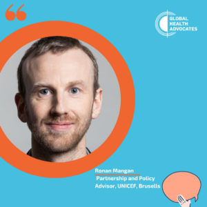 Ronan Mangan is a Partnership and Policy Advisor with UNICEF’s Public Partnership Division, based in Brussels, where he leads engagement with the EU Institutions. He advances UNICEF’s policy and partnership priorities across EU external action, ensuring children’s rights are central to EU budgetary, development and humanitarian policies. His work focuses on strategic EU engagement and evidence‑based dialogue to strengthen results for children worldwide.